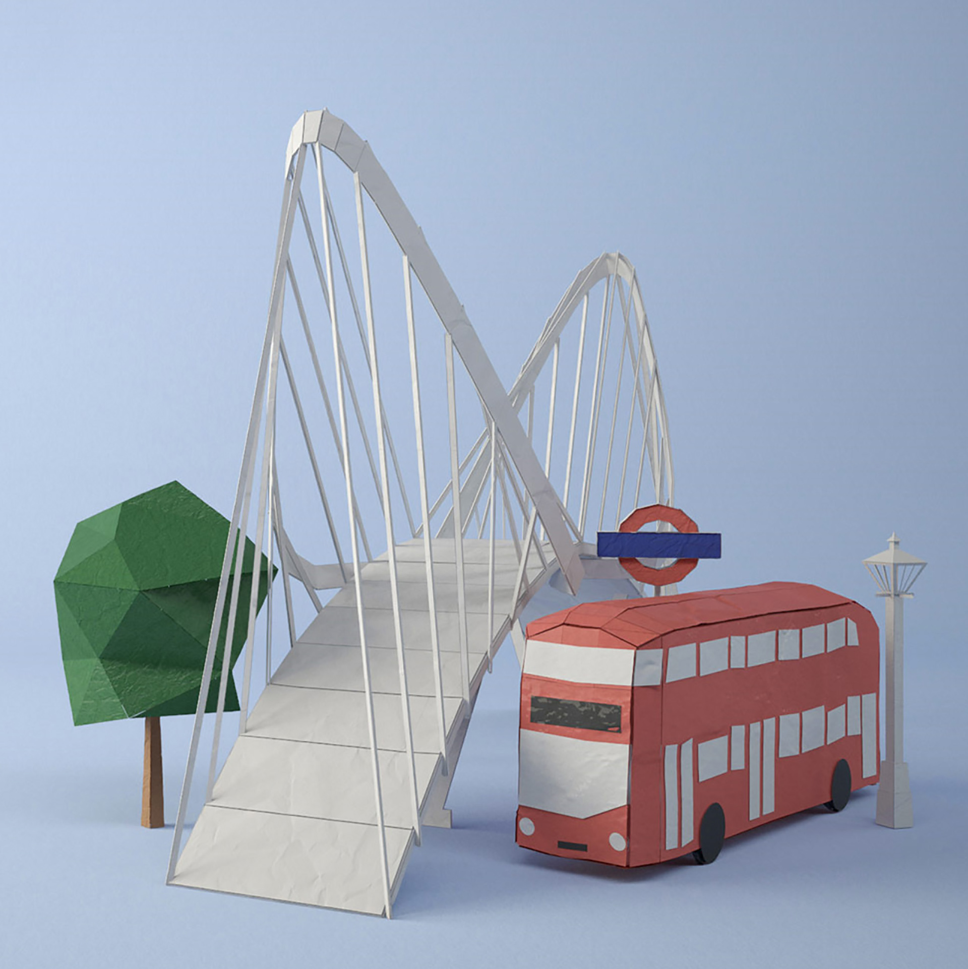 Inspiration for the paper model came from Uniform's Greenwich Peninsula project. Their trees and vehicles (below left/centre) were reference for mine (below right).
